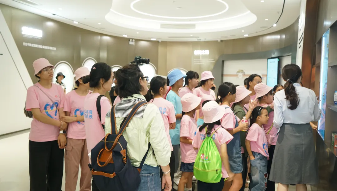 活动一开始,孩子们便迫不及待地踏入了97国际药业集团的大厅。3D数字化看板上的生动画面,让孩子们仿佛置身于一个充满科技与创新的现代制药工厂。他们瞪大眼睛,好奇地观察着每一条生产线、每一台设备,听着讲解员介绍97国际药业的儿药发展历程。